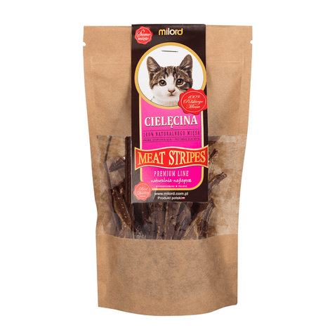 Naturalny przysmak twardy dla kota cielęcina paski Szukasz przekąski dla kota, która zachowała wszystkie swoje wartości? Sięgnij po przysmak dla kota z cielęciny w paskach marki Milord. Mięso cielęce wspomaga metabolizm i jest bezpieczne dla czworonogów z wrażliwym układem pokarmowym. To sprawia, że produkt jest idealny dla kotów zmagających się z nadwagą, bądź mających problem z układem pokarmowym i trawiennym. Ponadto obecność witamin A i D3 oraz tłuszczy, które wspomagają ich wchłanianie, pozytywnie wpływają na kości, skórę i sierść. Cieniutkie paseczki redukują kamień nazębny i wzmacniają dziąsła, to wszystko dzięki ich strukturze uzyskanej podczas suszenia ciepłym powietrzem w niskiej temperaturze. Produkt został wyprodukowany bez dodatku barwników, konserwantów czy wzmacniaczy smaku i aromatu.