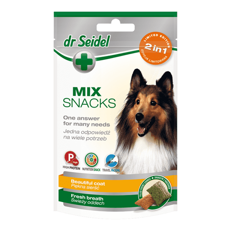 Pierwszy na rynku MIX dla psów wzbogacony o dobroczynne substancje w ilościach odpowiadających suplementom diety. Skrzyp polny i cynk poprawiają stan skóry i sierści. Chlorofil i Yucca neutralizują nieprzyjemny zapach z pyska i zmniejszają intensywność zapachu zwierząt oraz ich odchodów. Ciasteczka można rozróżnić po kolorze: