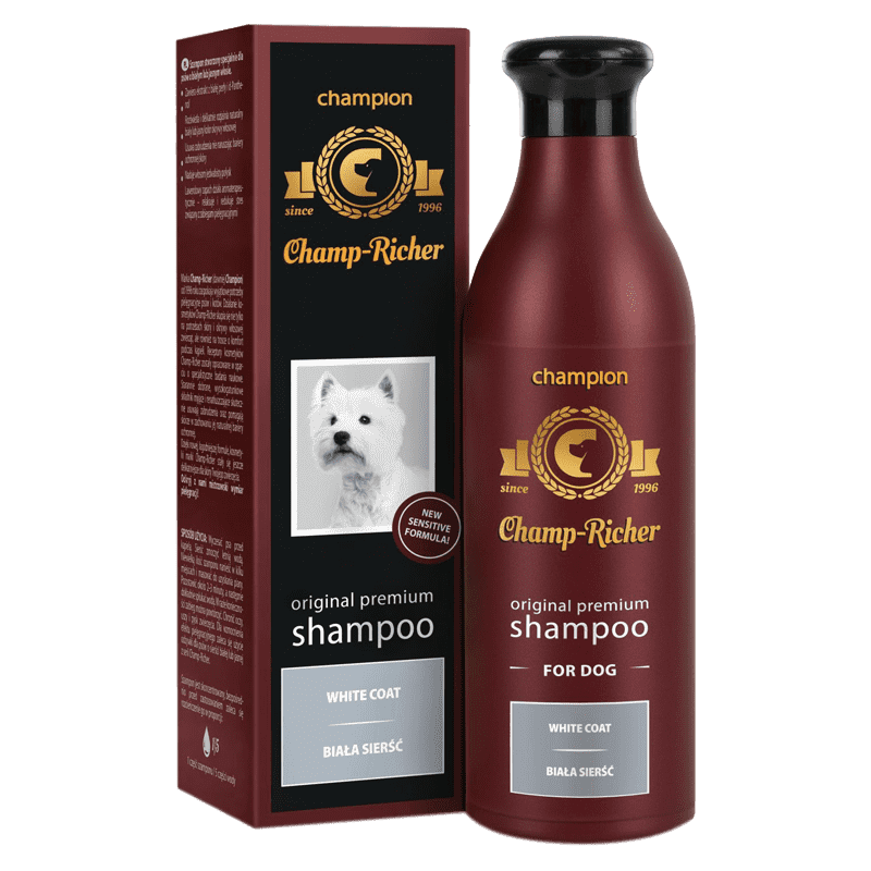 Wyczesać psa przed kąpielą. Sierść zmoczyć letnią wodą. Niewielką ilość szamponu nanieść w kilku miejscach i masować do uzyskania piany. Pozostawić około 2–3 minuty, a następnie dokładnie spłukać wodą. W razie konieczności zabieg można powtórzyć. Chronić oczy, uszy i pysk zwierzęcia. Dla wzmocnienia efektu pielęgnacyjnego zaleca się użycie odżywki dla psów o sierści białej lub jasnej z serii Champ-Richer (Champion).