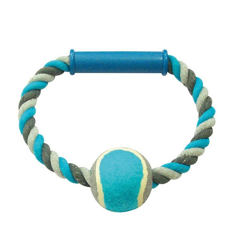 Sznury firmy Duvo+ wykonane są z gęsto plecionego, kolorowego sznura. Pomagają utrzymać higienę jamy ustnej twojego pupila. Podczas gryzienia i zabawy włókna masują dziąsła uśmierzając podrażnienia. Plastikowy uchwyt i piłka pozwalają na zabawę właściciela z jego psem.