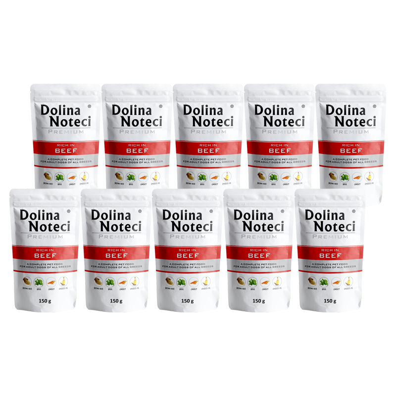 10 x Mokra karma dla psa Dolina Noteci Premium bogata w wołowinę saszetka 150 g