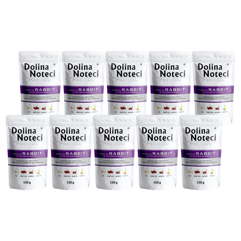10 x Mokra karma dla psa Dolina Noteci Premium bogata w królika z żurawiną saszetka 150 g