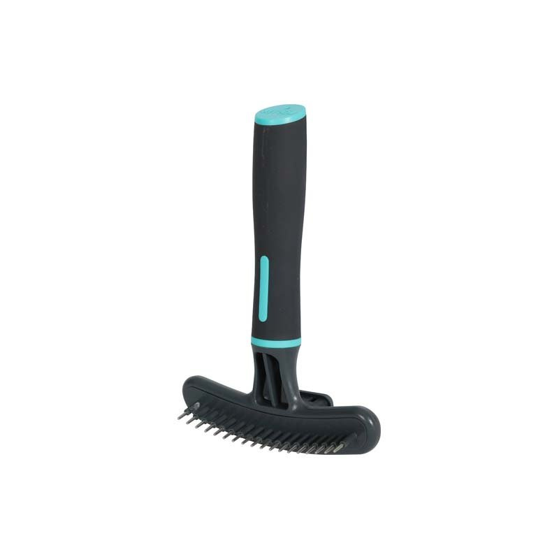 ZGRZEBŁO Z 18 WYSUWANYMI ZĘBAMI - skutecznie usuwa martwy podszerstek i delikatnie rozczesuje, dzięki obrotowym zębom. Zaokrąglone na końcach zęby nie podrażniają skóry psa. Dzięki wysuwanym zębom zgrzebło jest wygodne w użyciu i łatwe do utrzymania w czystości.
