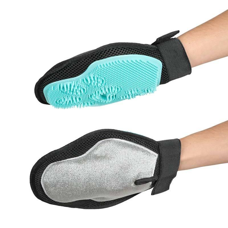 Miękka strona służy do mycia takich wrażliwych miejsc jak oczy, pysk i uszy. Tą stroną można również zbierać sierść pozostawioną przez zwierzę na odzieży, tapicerce czy innych tekstyliach.