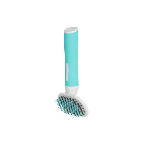 MIĘKKA SZCZOTKA - Umożliwia delikatne szczotkowanie podszerstka, dzięki elastycznym igłom, których plastikowe końcówki chronią skórę szczenięcia przed podrażnieniami. Plastikowe końcówki zapewniają większy komfort zwierzęcia.