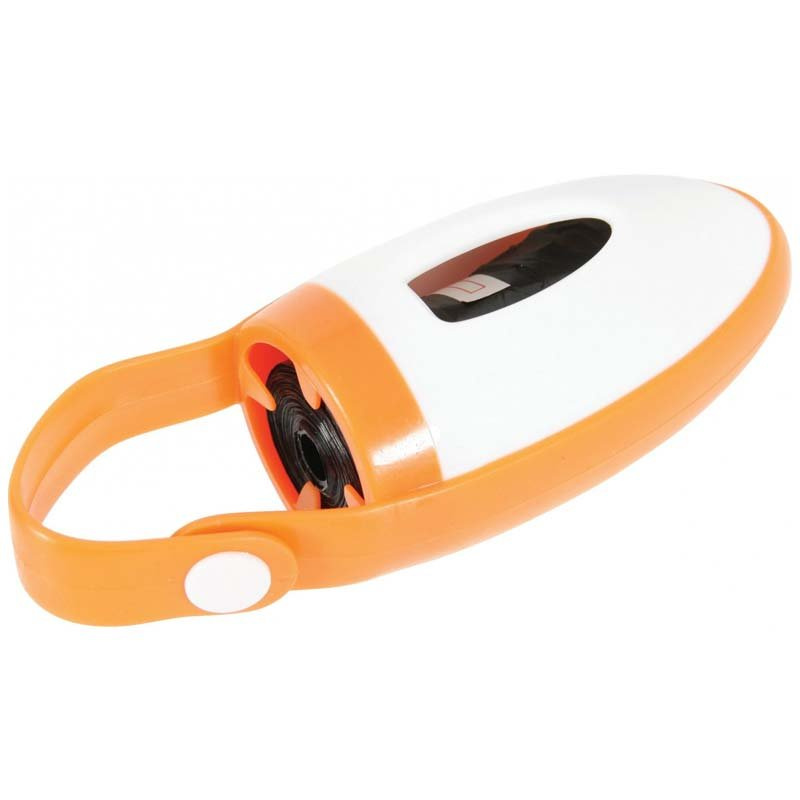 Żyjmy lepiej razem! Pojemniki na woreczki na psie odchody są kolorowe i posiadają oryginalny design. Łatwe w użyciu: otwór pojemnika pozwala na wyjmowanie woreczków pojedynczo. Praktyczne: łatwe do zawieszenia dzięki rozpinanemu zatrzaskowi. Wkłady są wymienne - opakowanie zawiera załączone 20 woreczków. Dostępne w 3 kolorach : pomarańczowym, zielonym i niebieskim. Wymiary (sz. x dł. x wy.) [mm]: 50 x 50 x 140 mm