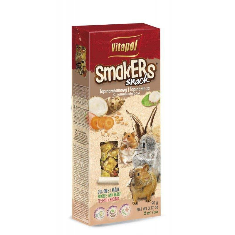 Smakers stanowi urozmaicenie i uzupełnienie diety gryzoni i królików. Podstawowym składnikiem jest topinambur, a przede wszystkim jego bulwy, które są bogate witaminy: A, B1, B2, B6, C, i E., potas, cynk, fosfor, żelaza, tiaminy, krzemionkę, fruktozę, pektyny i błonnik. Jest rośliną szczególnie polecaną dla zwierząt z cukrzycą lub skłonnościami do jej występowania, bowiem obniża poziom glukozy we krwi. Poza tym w smakersie znajdziemy m.in. marchew, groszek, pasternak oraz domieszkę mniszka. Mniszek jest bogaty w witaminy A, B, C, D ,inulinę, garbniki, olejek eteryczny, śluz, pektyny. Działa przeciwzapalnie, poprawia trawienie oraz oczyszcza organizm ze szkodliwych produktów przemiany materii.