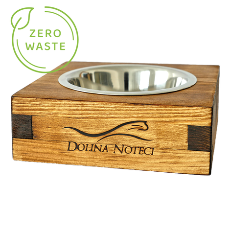 Miska dla psa lub kota w ręcznie wykonanym, stylowym drewnianym stojaku, to gadżet, w którym każdy posiłek Twojego pupila będzie smakował wyśmienicie. Drewno z rozbiórki wykorzystane do stworzenia drewnianej obudowy miski nadaje produktowi niepowtarzalnego wyglądu, który pasuje do każdego otoczenia. W tej ekologicznej drewnianej obudowie znajduje się metalowa miska. Jej pojemność - 0,9 l - sprawia, że czworonogom łatwo jest pobierać z niej pokarm i wodę. Produkt jest łatwy do czyszczenia: pojemnik z metalu można umyć ręcznie lub w zmywarce, drewnianą obudowę wystarczy przetrzeć wilgotną ściereczką i osuszyć.