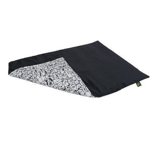 Praktyczny, wielofunkcyjny kocyk dla psa. Może służyć jako legowisko, mata dla psa do samochodu lub na kanapę. Wykonany ręcznie w Polsce z wysokiej jakości materiałów. Uszyty z jednej strony z miękkiego polaru, z drugiej z nieprzemakalnej, odpornej zaplamienie i zdrapania mocnej tkaniny w charakterystyczny wzór biało-czarnych piesków. Wypełniony syntetycznym puchem, dzięki czemu jest super wygodny i można go prać w pralce