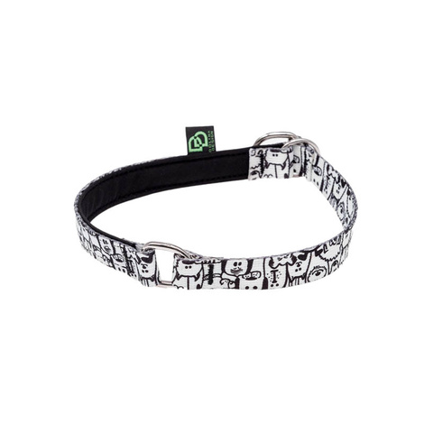 Poszukujesz obroży wygodnej dla Twojego psa, jednocześnie delikatnie dyscyplinującej go podczas codziennych spacerów, czy treningów? Półzacisk to bezinwazyjna metoda korygowania niewłaściwego zachowania. Dzięki niej pupil może odczuć swobodę poruszania, która w razie niebezpieczeństwa zostaje pohamowana. W chwili ciągnięcia obroża zmniejsza swoją średnicę zatrzymując się na metalowym stoperze, dając zwierzakowi sygnał, że zbyt mocno ciągnie. Jest ona nad wyraz wygodna i przyjemna w dotyku. Świetnie przyozdabia szyję psa nie ocierając się o jego delikatną skórę. Materiałowe podszycie znajdujące się we wnętrzu obroży sprawia, że jest ona bardzo trwała, wytrzymała, odporna na zmienne warunki atmosferyczne Dzięki zastosowaniu metalowego pierścienia blokującego, mamy możliwość idealnego dopasowania rozmiarów obroży do karku pupila. Seria obroży półzaciskowych została zaprojektowana z myślą o psach młodych, nie mających świadomości swojej siły, czy wagi. Znajduje także zastosowanie u psów już dorosłych mających problemy z zaakceptowaniem zasad panujących podczas codziennych spacerów. Obroża pólzaciskowa jest odpowiednia dla psów zarówno krótko jak i długowłosych. Niewątpliwym atutem jest możliwość łatwego, szybkiego zakładania i zdejmowania obroży. Doskonale sprawdza się podczas szkoleń, czy tresury naszego psa. Ważne! - Należy pamiętać, że obroża nie może być za ciasna by nasz pupil nie odczuwał dyskomfortu Aby właściwie dobrać rozmiar obroży półzaciskowej dla Twojego pupila koniecznie jest zmierzenie obwodu głowy wraz z jego uszami. Do wymiaru dodaj jeszcze 5 cm.