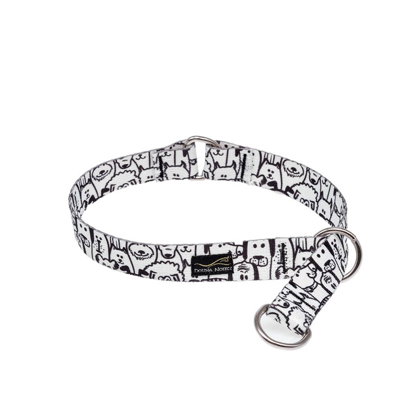 Piękna obroża w wersji półzaciskowej stworzona została z myślą o miłośnikach minimalistycznej kolekcji. Czarno – białe kolory sprawiają, że pies także może poczuć się wyjątkowo. Jedyną bardzo subtelną i delikatną ozdobą obroży jest wszywana metka z logiem marki Dolina Noteci. Wykonana została z bardzo przyjemnej w dotyku, a jednocześnie trwałej tkaniny. Jeżeli szukasz obroży wygodnej w codziennym użytkowaniu to ta kolekcja stworzona została właśnie z myślą o Tobie i Twoim psie. Obroża półzaciskowa świetnie sprawdza się u psów aktywnych, dla których możliwość szybkiego zakładania i zdejmowania obroży jest bardzo istotna. Bardzo dobrze sprawdza się także u młodych, często bardzo niecierpliwych psów, dla których codzienne zakładanie obroży trwa zawsze zbyt długo. Niewielka waga obroży sprawia, że pies zapomina, że ma coś założonego na swoim karku a tkanina, z której jest wykonana jest bezpieczna dla sierści - nie wyciera jej ani nie kołtuni. W razie zabrudzenia obroża może być prana mechanicznie w niskich temperaturach. Ważne ! - Obroża półżaciskowa jest zakładana przez głowę przy minimalnym rozmiarze musi być większa niż średnica głowy. Należy jednak pamiętać, ze nie może ona z niej spadać przy nachyleniu czy skoku.