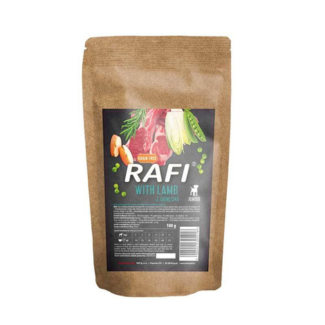 Sucha karma Rafi dla szczeniąt i młodych psów z jagnięciną zawiera: