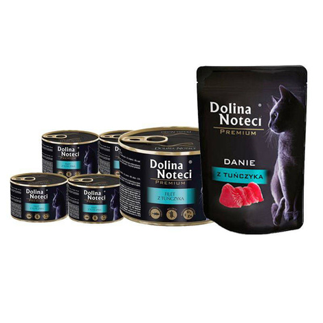 Mokra karma dla kota filet z tuńczyka Dolina Noteci Premium zestaw 12 x 185 g + danie z tuńczyka 85 g gratis