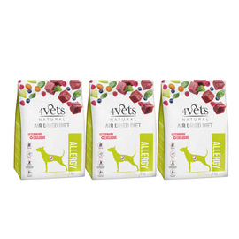 4Vets Natural Allergy to pełnoporcjowa, dietetyczna karma suszona dla psów z objawami nietolerancji lub alergii pokarmowej. Zawiera jedno źródło białka oraz zwiększoną zawartość kwasów tłuszczowych Omega-3 i Omega-6, dzięki czemu niweluje proces zapalny oraz łagodzi zmiany w obrębie zarówno przewodu pokarmowego, jak i skóry. Stosowanie tej diety weterynaryjnej łagodzi objawy biegunki, która pojawia się w wyniku nietolerancji pokarmowej. Na produkcie może występować biały nalot, który jest efektem naturalnie zachodzącej krystalizacji składników mięsa. Nie ma on wpływu na jakość karmy.