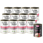 Mokra karma dla psa Dolina Noteci Premium bogata w cielęcinę z zielonym groszkiem zestaw 12 x 400 g + Piper Animals z kaczką i gruszką 400 g Gratis