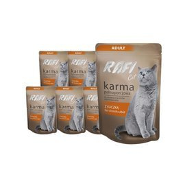 Ze względu na to, że koty są zwierzętami czysto mięsożernymi, ich dieta musi bazować przede wszystkim na produktach mięsnych, zbliżonych do naturalnej kociej diety. W naszym sklepie znajdziesz duży wybór mokrej karmy dla kota z tauryną, która zapewni Twojemu mruczkowi zdrowie oraz dobry humor każdego dnia. Proponujemy duży wybór mokrej karmy, która powinna stanowić bazę kociego jadłospisu. Znajdziesz u nas m.in. wysokogatunkową karmę Rafi z cielęciną, wołowiną, indykiem czy kaczką. Dostępna jest ona zarówno w puszkach, jak i w wygodnych saszetkach. Oferujemy również karmy dla kota z tauryną o specjalnym przeznaczeniu, np. dla mruczków po zabiegu sterylizacji, dla których odpowiednia będzie karma Piper z królikiem. Proponujemy także takie kocie rarytasy jak produkty marki Luger’s: kurczak z bażantem, indyk z przepiórką, łosoś i wątróbka z kurczaka czy cielęcina z jagnięciną. Żaden kociak nie przejdzie obojętnie obok takich przysmaków.
